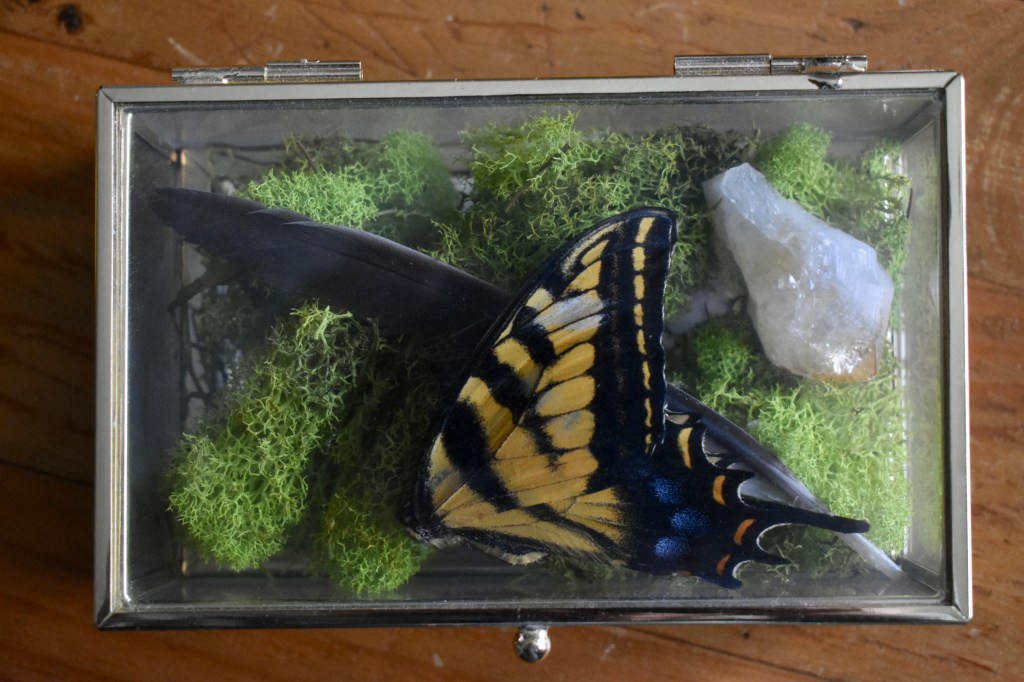 When we pulled up to our driveway I was in a little bit of a fog. I was still processing, trying to figure out how I could have seen that little girl without ever meeting her…and what were the chances that she had the same name? I looked out my window and in the exact spot I looked (meaning I didn’t search the yard) I saw something yellow lying in the grass. “What on earth?” I said out loud. I opened the car door and ran to it, already knowing what I had seen but not truly believing it. There, in the grass, laid a yellow swallowtail butterfly, resting directly on top of a feather. I leaned over and picked up the frail little body. It’s spirit was no longer there, just the shell – my heart was so overwhelmed by this gift, this grace, this evidence that Spirit wanted me to know “You are loved. I see you. I was with you today.”